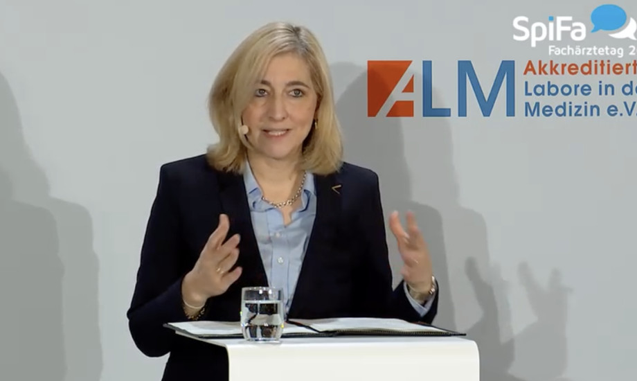 Bei der Einführung eines Primärversorgungssystems sei ihr ein offener Austausch mit allen Akteuren wichtig, betont Gesundheitsministerin Nina Warken beim SpiFa-Fachärztetag – und hebt dabei leicht mahnend den Zeigefinger in Richtung der Niedergelassenen.